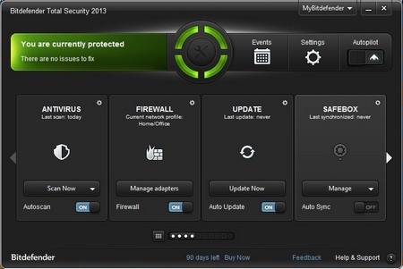 Giao diện phiên bản Bitdefender Total Security 2013 với 90 ngày sử dụng
