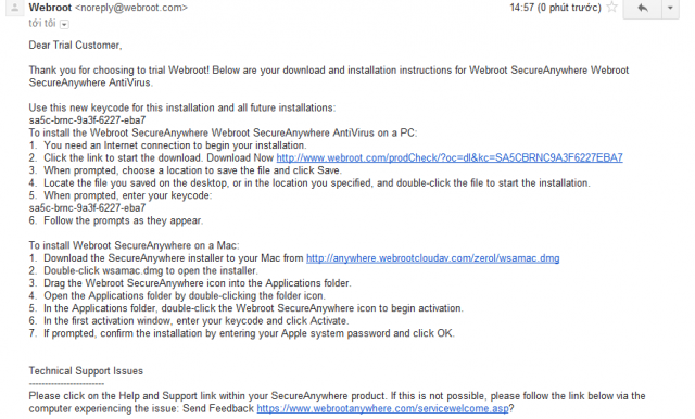 B3 : Nhận Key bản quyền 6 tháng và tải phần mềm Webroot Internet Security 2013: