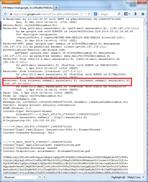 Ông Đức cũng đã tiến hành phân tích thêm về nguồn gốc của email phishing này, và cho thấy nó được xuất phát từ một máy chủ ở Phần Lan.