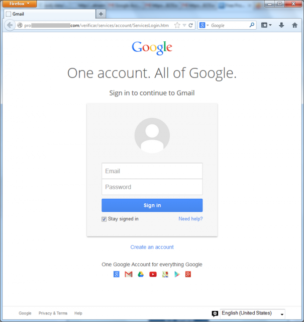Khi bấm vào link, một trang web có giao diện giống hệt phần đăng nhập của Gmail xuất hiện