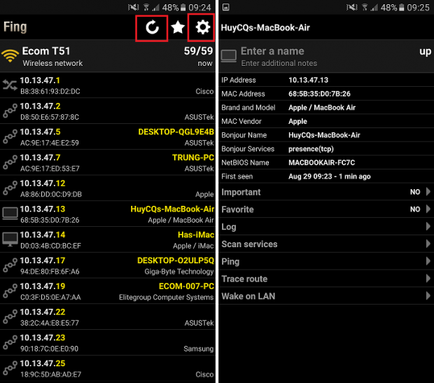 Nếu một trong những thiết bị kết nối với mạng Wi-Fi của bạn không phải là các thiết bị quen thuộc hoặc đáng ngờ, bạn có thể chặn nó mãi mãi. Fing sẽ cho bạn thấy địa chỉ MAC của mỗi thiết bị đã và đang kết nối với mạng của bạn (số lượng sẽ theo định dạng này và được hiển thị thành các con số và chữ cái: ‘xx: xx: xx: xx: xx’). Bạn hãy ghi nhớ những con số này và làm theo các bước sau: