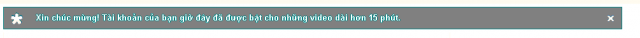 Bước 4 : Thông báo xác minh tài khoản thành công và bạn có thể Upload những đoạn video HD có thời lượng lớn hơn 15 phút