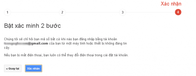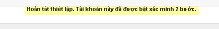 Sau các bước xác nhận tiếp theo thì tài khoản của bạn thực sự đã đăng ký thành công 'Xác minh 2 bước' của dịch vụ bảo mật Gmail