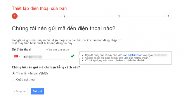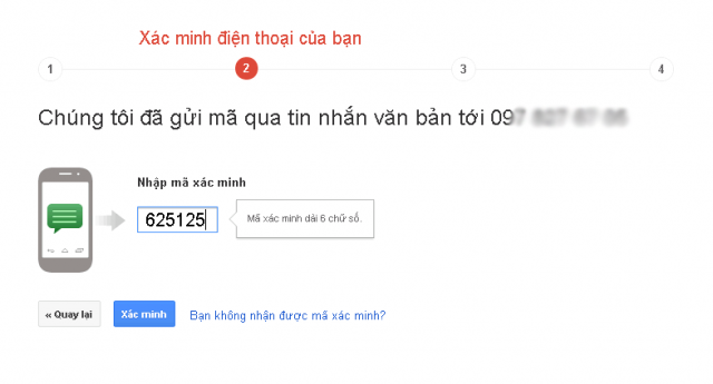 Chú ý : Điền số điện thoại của cá nhân bạn vì mỗi khi yêu cầu đăng nhập thì dịch vụ sẽ gửi một đoạn CODE để xác minh bảo mật tài khoản
