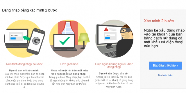 Từ giờ, khi bất kì ai đăng nhập vào tài khoản của bạn, dù có biết mật khẩu, Google đều sẽ gửi mã xác nhận vào điện thoại của bạn. Điều này cho phép bạn không bị mất tài khoản khi sử dụng máy tính ở nơi công cộng hay phòng làm việc, vì dù kẻ xấu có lấy được mật khẩu của bạn cũng không thể đăng nhập được vào tài khoản. Chúc tài khoản của bạn luôn được an toàn.