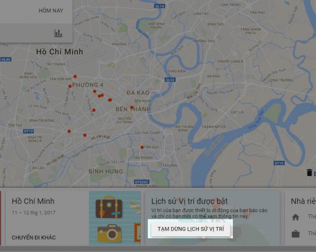 Tại đây, bạn sẽ thấy những địa điểm mà mình đã đi đến, mọi người chỉ việc nhất mục Tạm dừng lịch sử vị trí để tắt chức năng theo dõi.
