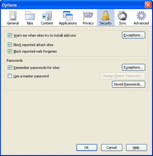 May mắn là Firefox cung cấp một master password có chức năng mã hóa và bảo vệ bằng mật khẩu danh sách các password được lưu. Sau khi kích hoạt tính năng này, bạn phải nhập master password trong lần đầu tiên đăng nhập với password đã lưu, nhập một lần trước mỗi phiên làm việc của trình duyệt.