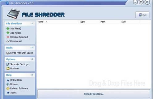File Shredder là một công cụ miễn phí được thiết kế để xóa an toàn các tập tin trên máy tính. Ngoài khả năng xóa sạch tập tin và thư mục, bạn có thể xóa an toàn dữ liệu đã bị ẩn đi trên không gian đĩa được cho là bị trống.