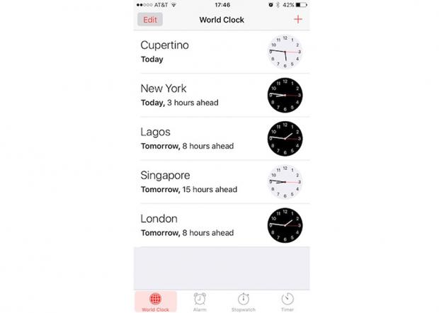 Nếu bạn sử dụng ứng dụng Đồng hồ thế giới, bạn sẽ nhận thấy rằng không phải tất cả những mặt đồng hồ đều giống nhau. Có 2 loại mặt đồng hồ là màu trắng và đen tuy nhiên ý nghĩa của chúng lại không đơn giản vậy. Chính xác đó là một thiết kế để biểu thị vị trí hiện tại của đồng hồ đó là ban ngày (trắng) hoặc ban đêm (màu đen).