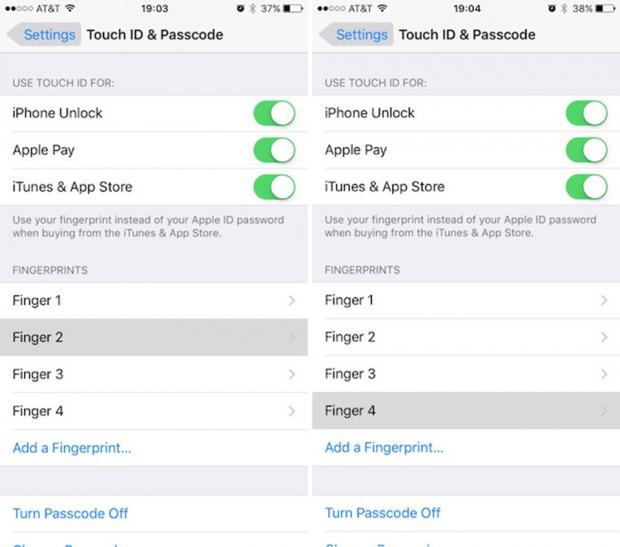 Chúng ta thường hay cài đặt vân tay và mở khóa điện thoại chứ có rất ít người dùng biết rằng Touch ID sẽ nhớ ngón tay cụ thể. Ví dụ các bạn vào Settings -> Touch ID & Password rồi cài đặt một vài ngón tay lên để mở khóa. Sau đó, bạn sẽ thấy danh sách các dấu vân tay bạn đã tạo ra. Nếu bạn đặt một ngón tay vào nút Home vân tay tương ứng sẽ chuyển màu xám. Điều này làm cho cho bạn dễ dàng để xem những ngón tay được gán cho tên cụ thể.