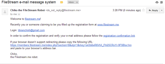 Sau đó bạn truy cập vào hộp thư đã đăng ký để kích hoạt tài khoản thông qua được dẫn đích kèm trong email do dịch vụ gởi đến.