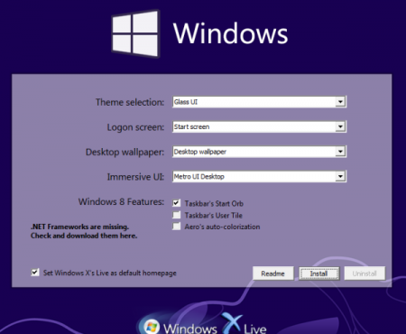 Mặc định, các bộ giao diện (theme) dành cho Windows 8 sẽ không thể dùng trên Windows Vista/7. Tuy nhiên, bạn có thể giải quyết vấn đề trên bằng cách cài đặt công cụ Windows 8 UX Pack 6.0, tải về tại đây (dung lượng: 19,44 MB). Quá trình cài đặt diễn ra tương tự Windows 8 Transformation Pack 6.0 dành cho Windows XP.