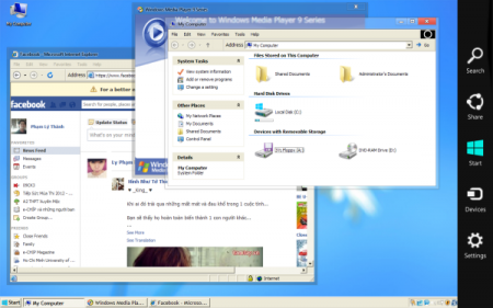 - Thanh sidebar bóng bẩy trong Windows 8 cũng được mang vào đặt bên phải desktop Windows XP.