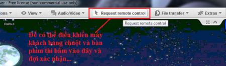 Khi chưa được cấp phép điều khiển màn hình thì người điều khiển chỉ có thể thấy biểu tượng con chuột tượng trưng để di chuyển, không thể tương tác với máy người dùng, khi người điều khiển dùng chuột bấm vào vị trí nào đó trên màn hình người dùng thì con chuột này sẽ hiện ra với 1 biểu tượng phát ra sóng để đánh dấu vị trí cần yêu cầu người dùng thực hiện thao tác, và để sử dụng chuột và bàn phím điều khiển thì bạn bấm vào nút Request remote control từ trên bản điều khiển, và đợi xác nhận sự cho phép của người dùng.
