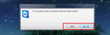 Ví dụ như hình dưới là từ giao diện người dùng được điều khiểu bằng Teamviewer, nhưng phải được sự cho phép thì người điều khiển mới có thể xem được màn hình hiển thị.