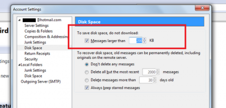 Bạn có thể cấu hình Thunderbird để ngăn chặn việc tải file email lớn. Thủ tục như sau: