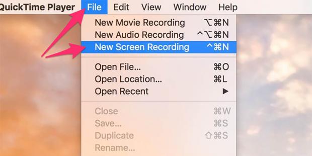Chọn File > New Screen Recording