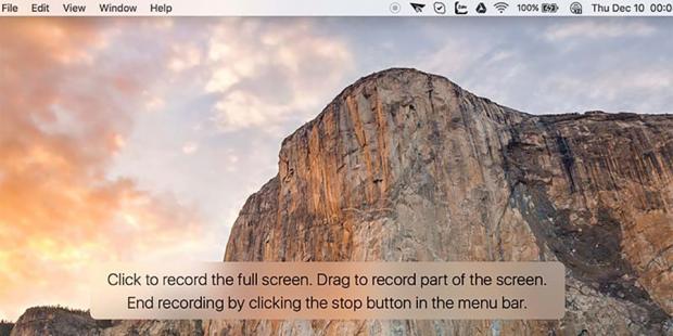 Bạn có hai lựa chọn, một là click để quay phim toàn cảnh màn hình, hoặc kéo chuột để vẽ vùng chọn quay.