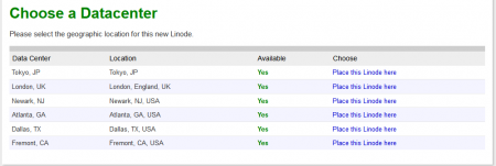 B4 : Chọn địa điểm đặt máy chủ bao gồm : Tokyo(JP) , London(UK), Dallas(USA)... Ấn 'Place this Linode here' để xác nhận địa điểm máy chủ.Tiếp tục bạn sẽ được chuyển tới Form chọn OS , cấu hình máy và nhập mật khẩu ROOT