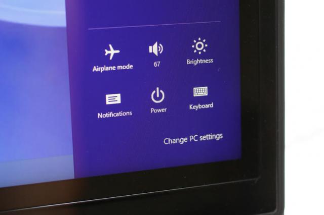 Màn hình hiển thị của laptop sử dụng khá nhiều điện. Khi bạn rút dây nguồn, tốt nhất bạn nên giảm độ sáng xuống dưới một nửa hoặc ở một mức độ thích hợp. Để làm vậy, bạn hãy vào menu Charms và chọn Settings. Các tùy chọn độ sáng nằm phía trên biểu tượng bàn phím và bên cạnh menu âm lượng.