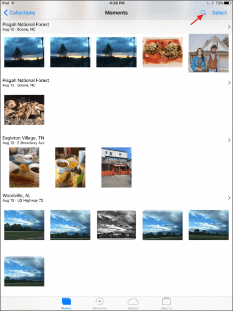Việc tìm kiếm các đối tượng có trong hình ảnh cũng khá là đơn giản. Bạn chỉ việc mở ứng dụng Ảnh, mở trang Ảnh hoặc Album lên, sau đó nhấn vào biểu tượng kính lúp để tìm kiếm.