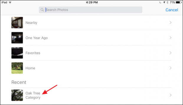 Lưu ý, ứng dụng Ảnh sẽ không lưu lại trên màn hình những bức hình bạn đã tìm kiếm sau khi thoát khỏi ứng dụng. Để xem lại những gì bạn đã tìm kiếm, bạn chỉ cần nhấn vào biểu tượng kính lúp thêm 1 lần nữa, và kéo xuống cuối trang tìm kiếm, nhấn vào mục “Recent” để xem lại kết quả đã tìm kiếm.