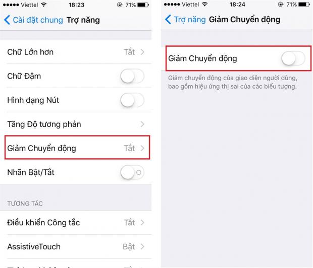 - Vào Cài đặt > Cài đặt chung > Trợ năng > Giảm thiểu chuyển động và tắt chúng đi.