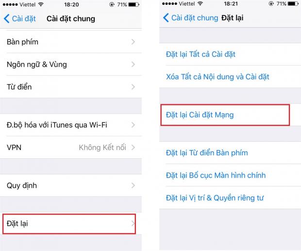 - Cài đặt > Cài đặt chung > Đặt lại > Đặt lại cài đăt mạng