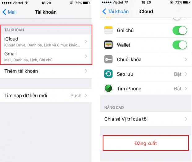 - Cài đặt > Mail > Tài khoản