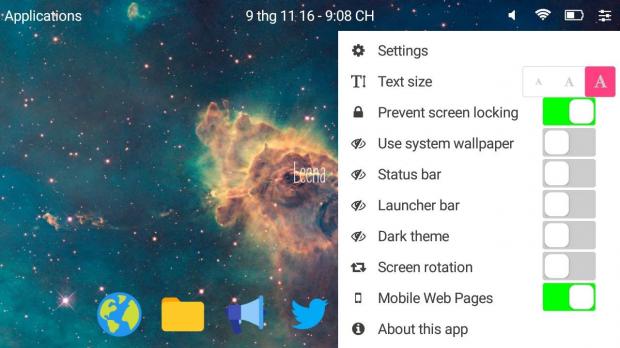 Leena Desktop UI cũng cho phép bạn tuỳ chọn nhiều thứ ở mục Setting như giao diện, hình nền, kích thước chữ,...