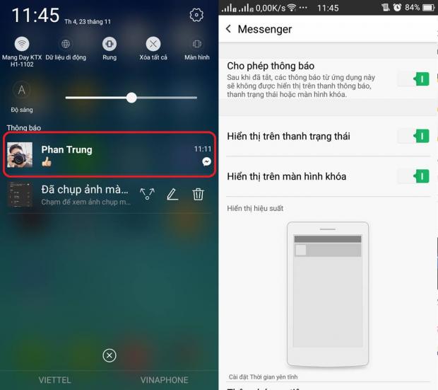 Khi bạn nhấn giữ vào thông báo của ứng dụng, máy sẽ hiện ra những tuỳ chọn như cho phép thông báo, hiển thị trên màn hình khoá, thông báo ưu tiên,... để người dùng có thể lựa chọn theo ý muốn.