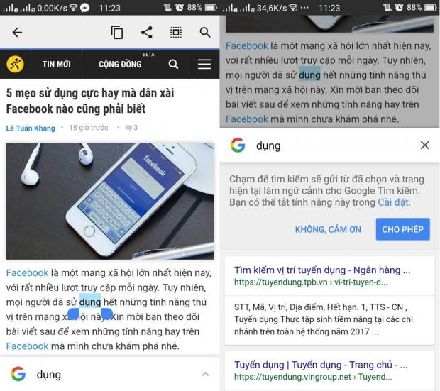 Khi đang lướt web, bạn có thể nhấp đôi vào từ mà mình muốn để copy, chia sẻ hoặc tìm kiếm trên Google một cách nhanh chóng.