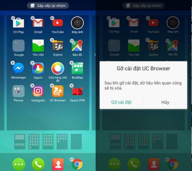 Khi muốn cài đặt một ứng dụng nào đó, một số bạn sẽ vào Cài đặt > Ứng dụng để gỡ. Tuy nhiên, người dùng hoàn toàn có thẻ gỡ bỏ những app không sử dụng đến ngay tại màn hình chính bằng cách nhấn giữ vào và chọn dấu X.