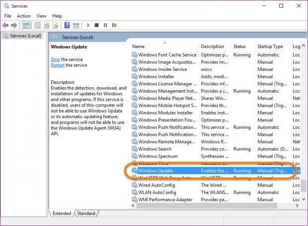 Bước 2: Trong cửa sổ Sercives mới xuất hiện. Duyệt qua danh sách liệt kê các dịch vụ của hệ điều hành và tìm chọn mục Windows Update.