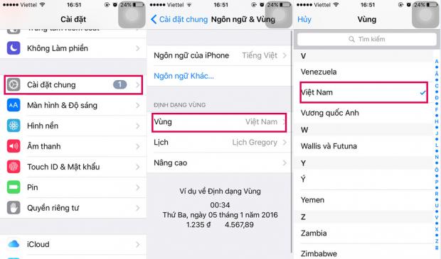 Cách làm: Vào Cài đặt > Cài đặt chung> Chọn mục “Ngày, giờ” hoặc “Vùng”. Sau đó cài đặt các thông số này bằng cách thủ công.