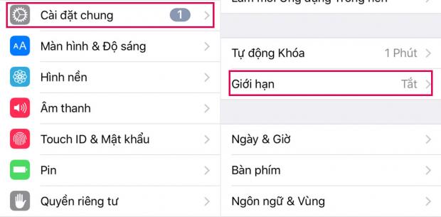 Cách làm: Vào Cài đặt > Cài đặt chung > Giới hạn > Tắt