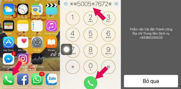 Bước 2: Nếu số trung tâm nhà mạng chưa chính xác. Bạn hãy tiến hành thay đổi số bằng cách sử dụng cú pháp **5005*7672*trung_tâm_tin_nhắn#