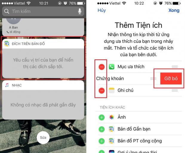- Tại màn hình khóa trượt sang phải để mở widgets > Kéo xuống dưới chọn 'Sửa' và tiến hành xóa bớt những widgets không cần thiết.