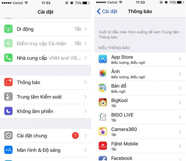 - Cài đặt > Thông báo > OFF những ứng dụng mà bạn cho là không cần thiết.