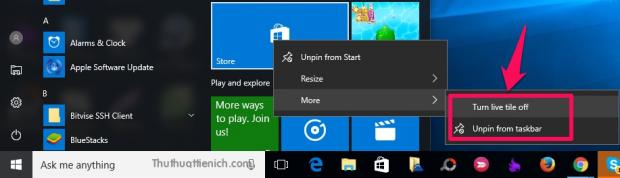 Để vô hiệu hóa những quảng cáo này, bạn chỉ cần nhấn chuột phải lên những tile quảng cáo này chọn Turn live tile off để chặn những tile này thay đổi quảng cáo thường xuyên hoặc Unpin from Start để bỏ ghim những tile này trong Start menu.