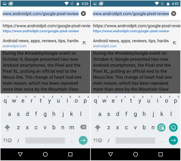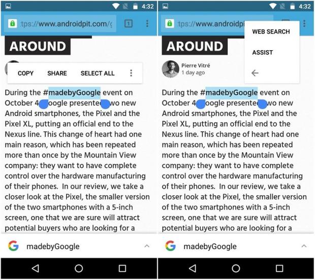 Kể từ thời Android 6.0 Marshmallow, bạn chỉ cần gõ nhẹ hai lần (hoặc nhấn giữ) vào một từ hoặc một cụm từ trong văn bản nào đó, sẽ có 3 tùy chọn hiện ra cho phép bạn sao chép, chia sẻ trực tiếp chúng thông qua các công cụ khác hoặc lựa chọn toàn bộ văn bản. Ngoài ra, nếu bạn nhấn vào 3 dấu chấm đặt thẳng hàng, hệ điều hành sẽ cung cấp thêm hai tùy chọn khác là tìm kiếm nội dung trên mạng hoặc dịch nghĩa mà không cần thoát ra khỏi màn hình.