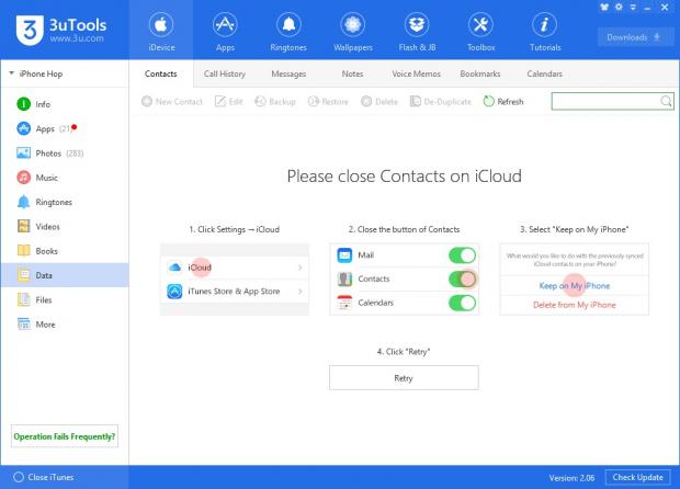 3uTools là công cụ đa năng, ngoài việc xóa liên lạc trùng thì ứng dụng này con cung cấp cho bạn 1 số giải pháp khác như: Quản lý tin nhắn, cuộc gọi nhỡ, ghi chú, hình ảnh, tạo nhạc chuông và đặc biệt là jailbreak iPhone.