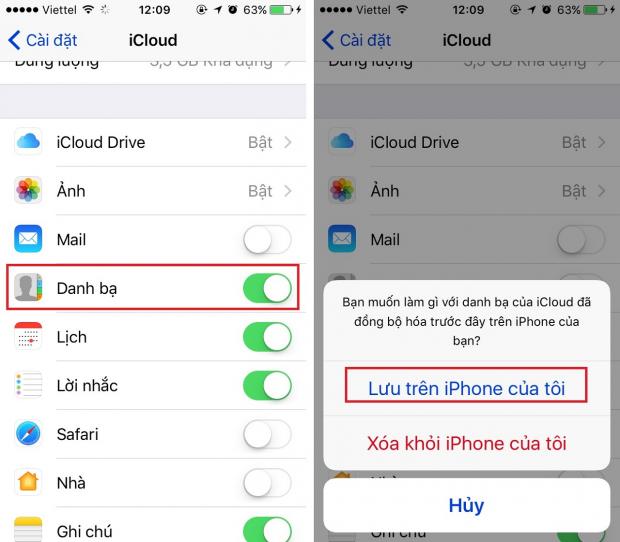 - Trên iPhone vào mục Cài đặt > iCloud Tắt mục Danh bạ.