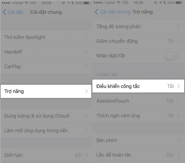 Để kích hoạt tính năng này, bạn vào Cài đặt > Cài đặt chung > Trợ năng và kích hoạt tính năng Điều khiển công tắc.