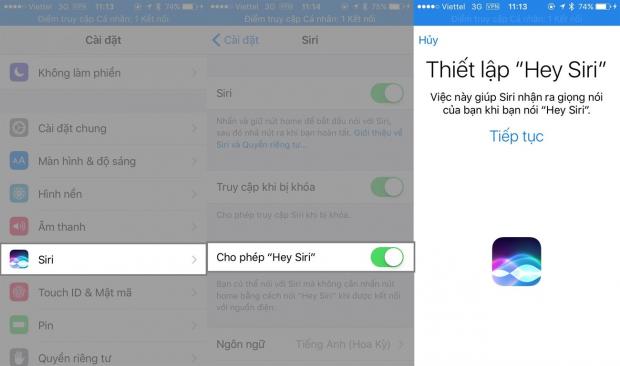 Để mở tính năng này bạn vào Cài đặt > Siri và chọn bật Cho phép 'Hey Siri'. Lúc này thiết bị sẽ yêu cầu bạn nhắc Hey Siri 3 lần sau đó nhắc lại vài câu lệnh mẫu.