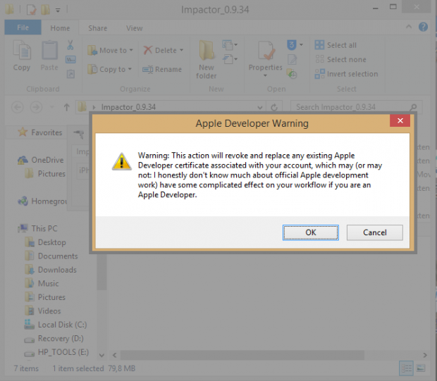 Sau khi nhập Apple ID vào, một bảng cảnh báo nhà phát triển của Apple sẽ hiển thị. Bước này bạn tiếp tục chọn OK.