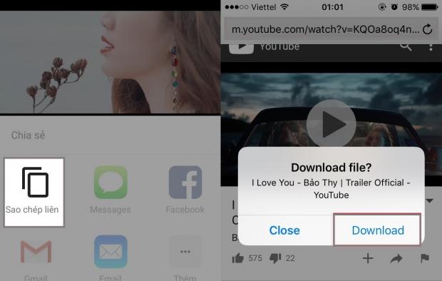 1. Tải trực tiếp video từ Youtube về Camera roll của iPhone