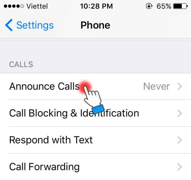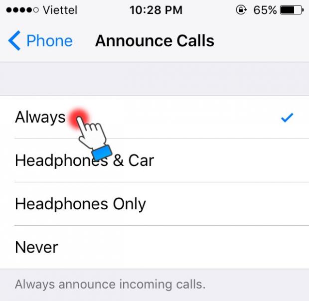 Lúc này nếu có cuộc gọi đến thì iPhone sẽ đọc tên người gọi nếu có trong Danh bạ còn không iPhone sẽ thông báo là ' A No Caller'.