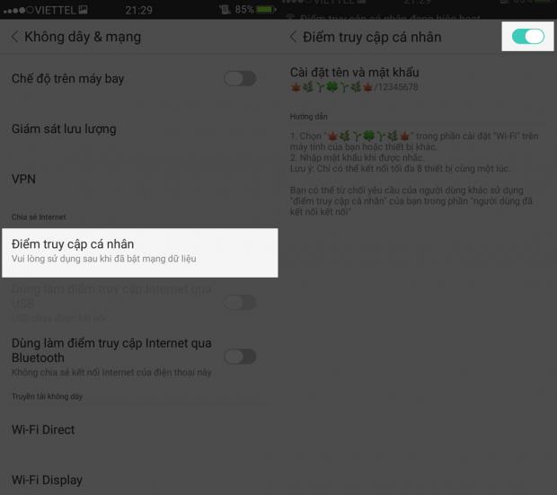 Bạn có thể biến smartphone của mình thành một bộ phát wifi di động bằng cách vào Cài đặt > Không dây và mạng > Điểm truy cập cá nhân. Tại đây, các bạn có thể đặt tên và mật khẩu cho địa điểm wifi của mình.