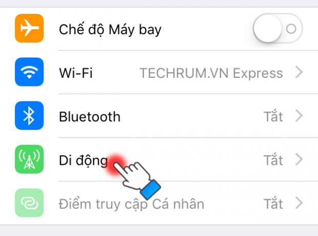 Để tắt tính năng Wi-Fi Assist bạn truy cập vào Cài đặt -> Chọn Di động.